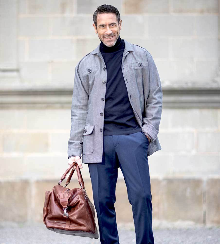 Tröjan är stickad i 100% Extra Fine Merino-ull som både andas och värmer väl. Garnet är importerat från Baruffa, Italien. Tröjan har ett broderat E på bröstet. Polotröjan är stilig men ger ändå en avslappnad look. Fin att bära både för sig själv eller under blå blazer som bilden. Polotröjan i merinoull i flera fina färger: grå, mellanlbå, marin, beige, oxblodsröd.