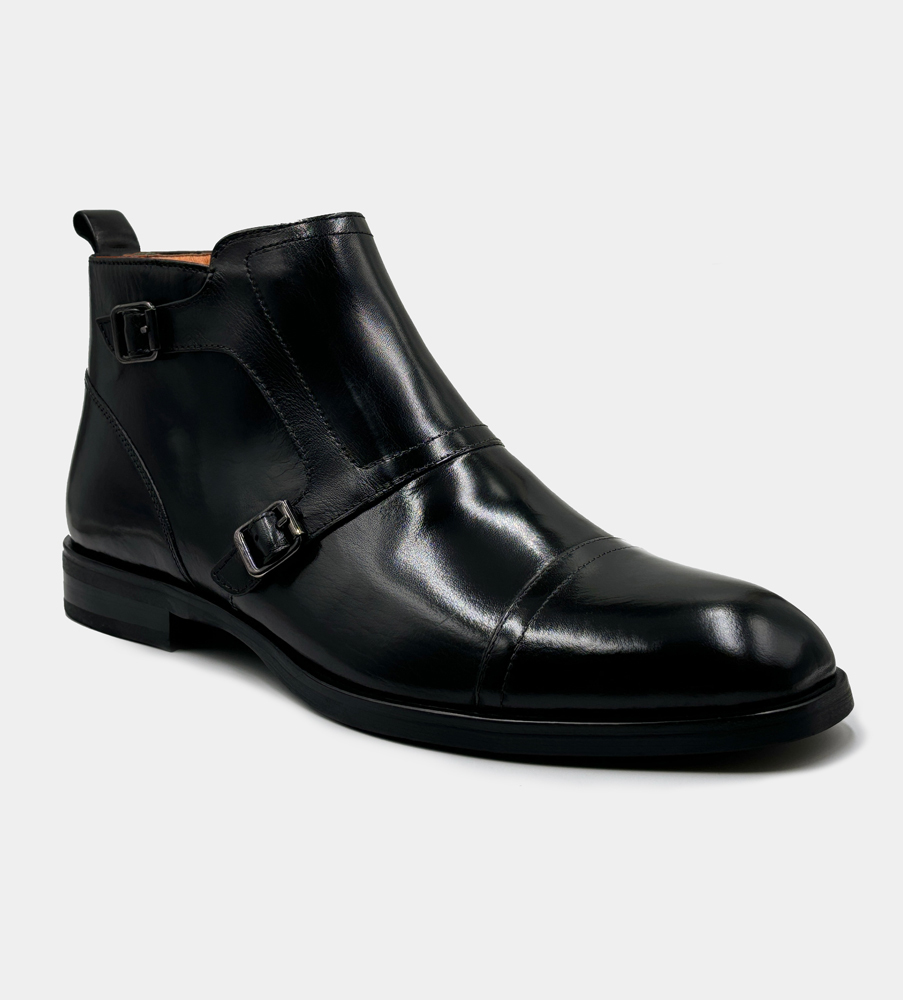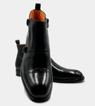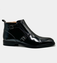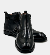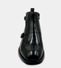 Eleganta och moderna boots i putsat buffelskinn. Bootsen har en praktisk dragkedja i sidan för enkelt insteg samt dubbla spännen för ökad karaktär. En sko för den självsäkre mannen med stil. Skomodellen finns även i brun nyans.