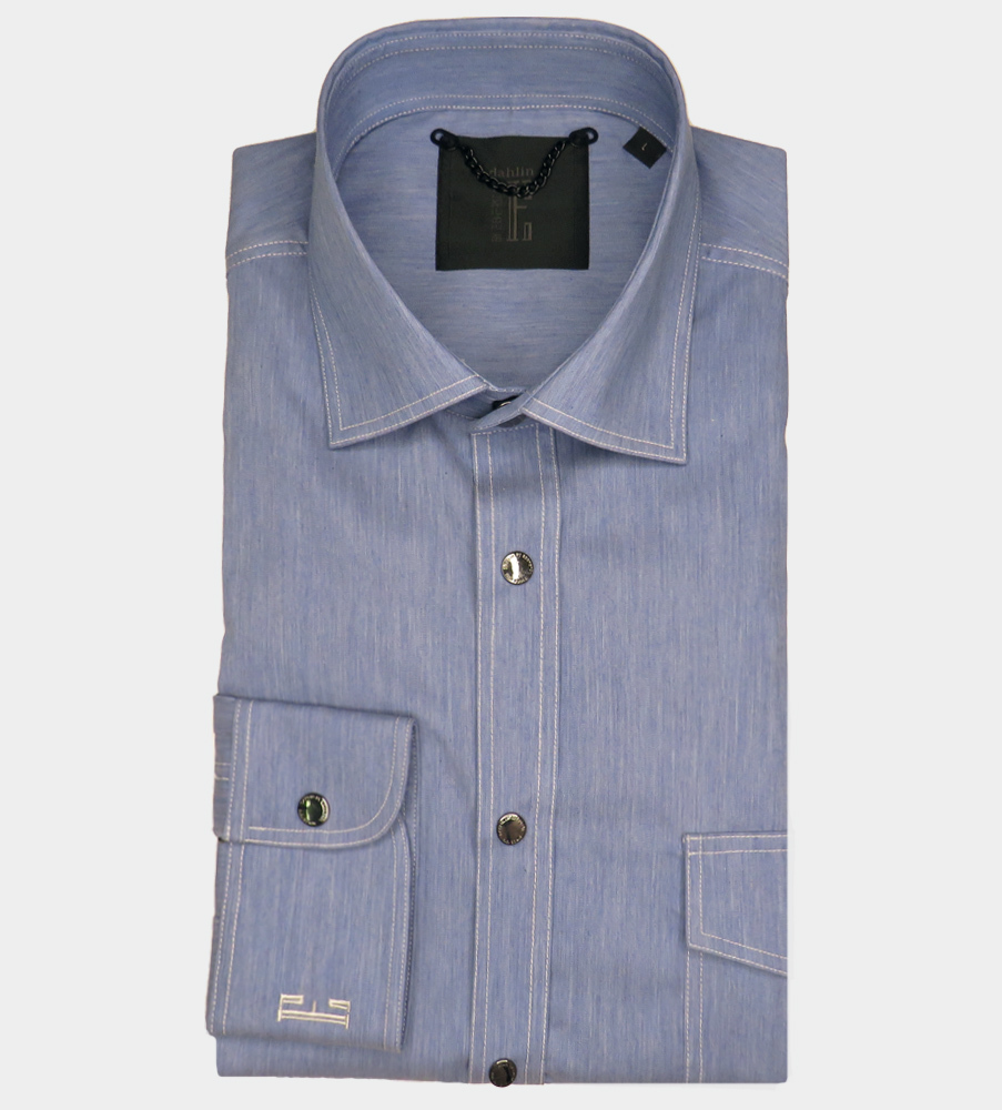 Dynasty Denim Stretch Skjorta Tryckknapp