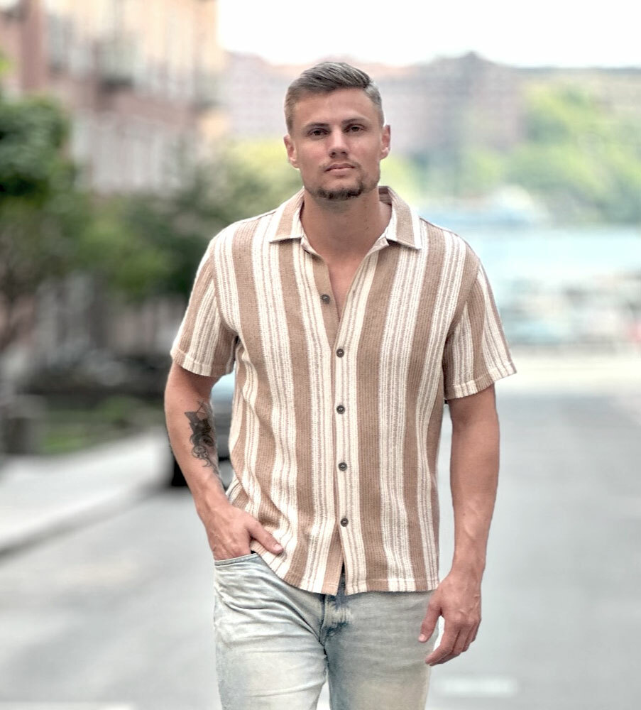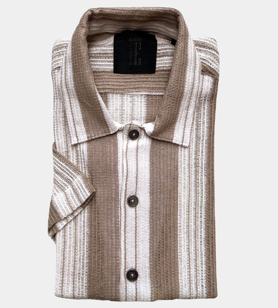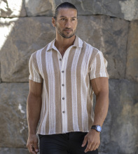 Elevate är årets häftigaste kortärm med den italienska rivieran som inspiration! Upplev kombinationen av trendrätt, supermanligt och excellent komfort; allt i ett. Skjortan är uppsydd av en bomull från Italien som ger en härlig struktur. Den kortärmade skjortan är randig, ger en luftig känsla och perfekt komfort och frihet. Knappen är en reproduktion från våra arkiv, i kaxig gunmetal utförande.