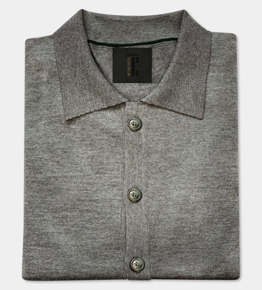 Nyhet! Dahlin By Eberstål utökar sortimentet med en härlig, trendig cardigan, en så kallad over-shirt i finaste merinoull. Plagget är slätstickat med krage och helknäppning fram för att stylas öppen eller knäppt, beroende på väder och vind och vilken skjorta du har inunder. Du kan använda den slätstickade overshirt som en casual, trendrätt ”kavaj” till våra häftiga Dahlin By Eberstål skjortor. Men du kan också bära denna grå cardigan direkt på kroppen för en skön stil och ultimat comfort. Gatsby cardigan finns i färgerna mörkgrön, grå, himmelsblå och blå >>. Kvalitet: 100% Merinoull