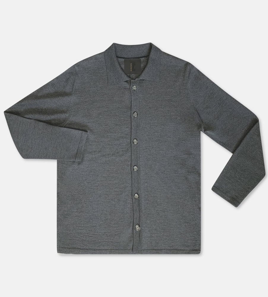 Gatsby - Overshirt Merino Cardigan med krage - Grå