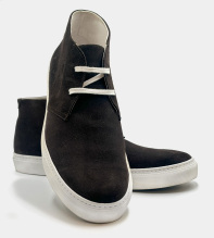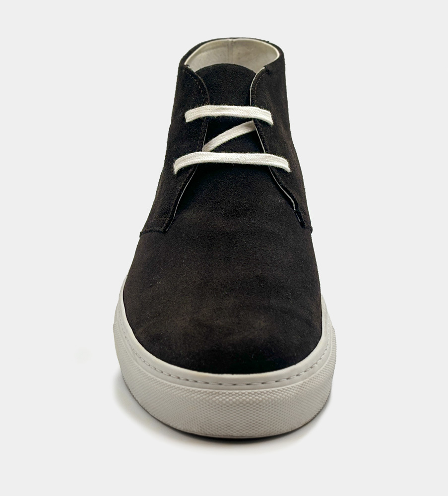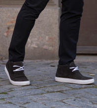 Höga sneakers i mjuk brun mocka med sammets känsla och fina miljömärkningar samt ungdomlig design. En hög sneaker passar bra både till vår och sommar tack vare att både ytter- och innerdelar är av äkta naturmaterial som läder och mocka. Skorna är tillverkade i finaste italienska mockan med aniline finish vilket innebär att när lädret färgas behålls den naturliga finishen. Utsidan har en snygg graverad dekordetalj. Sneakern har en bekväm passform tack vare det mjuka lädret. Sulan är krispigt vit, tillverkad i gummi för bra grepp och bekväm gång. Det ingår två olikfärgade skosnören, vita och bruna. Dessa mockasneakers finns i flera färger: blå, brun, beige och sand.