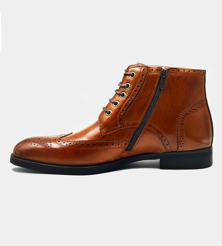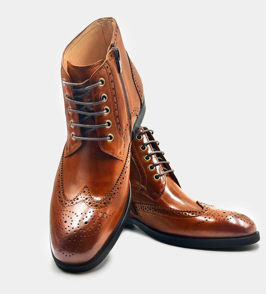 Eleganta och moderna bruna snörboots i putsat buffelskinn med broguedetaljer. Bootsen har snörning för exakt passform samt en dragkedja i sidan för enkelt insteg. En sko för den självsäkre mannen med stil. Skjortan som Ola Rapace bär på bilden finns här >>