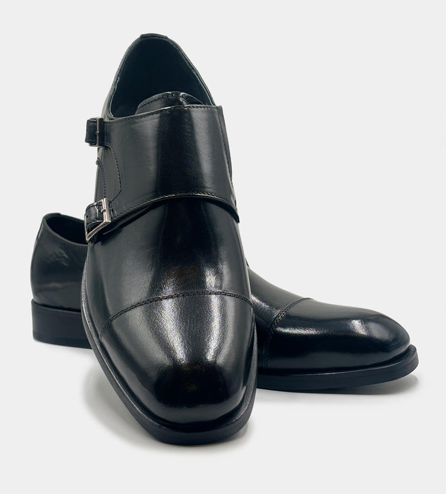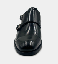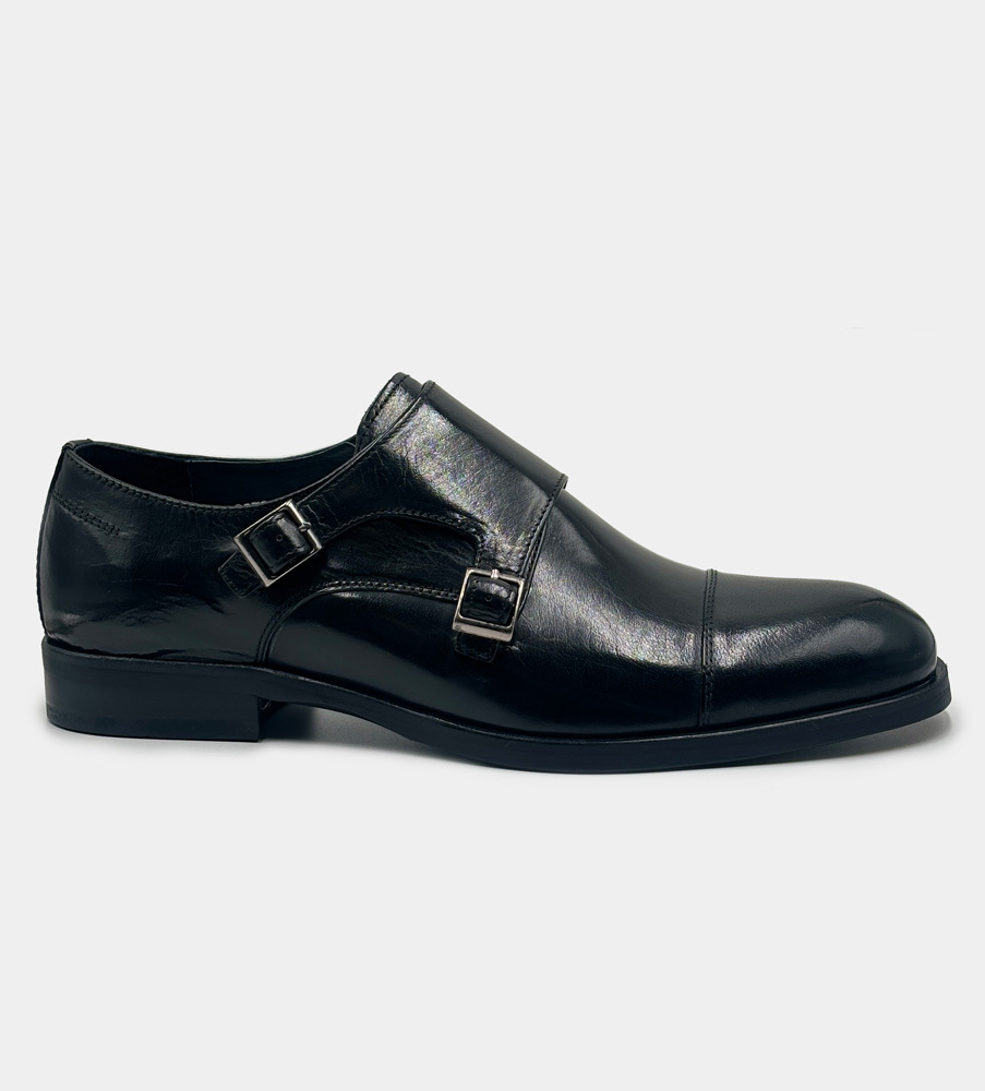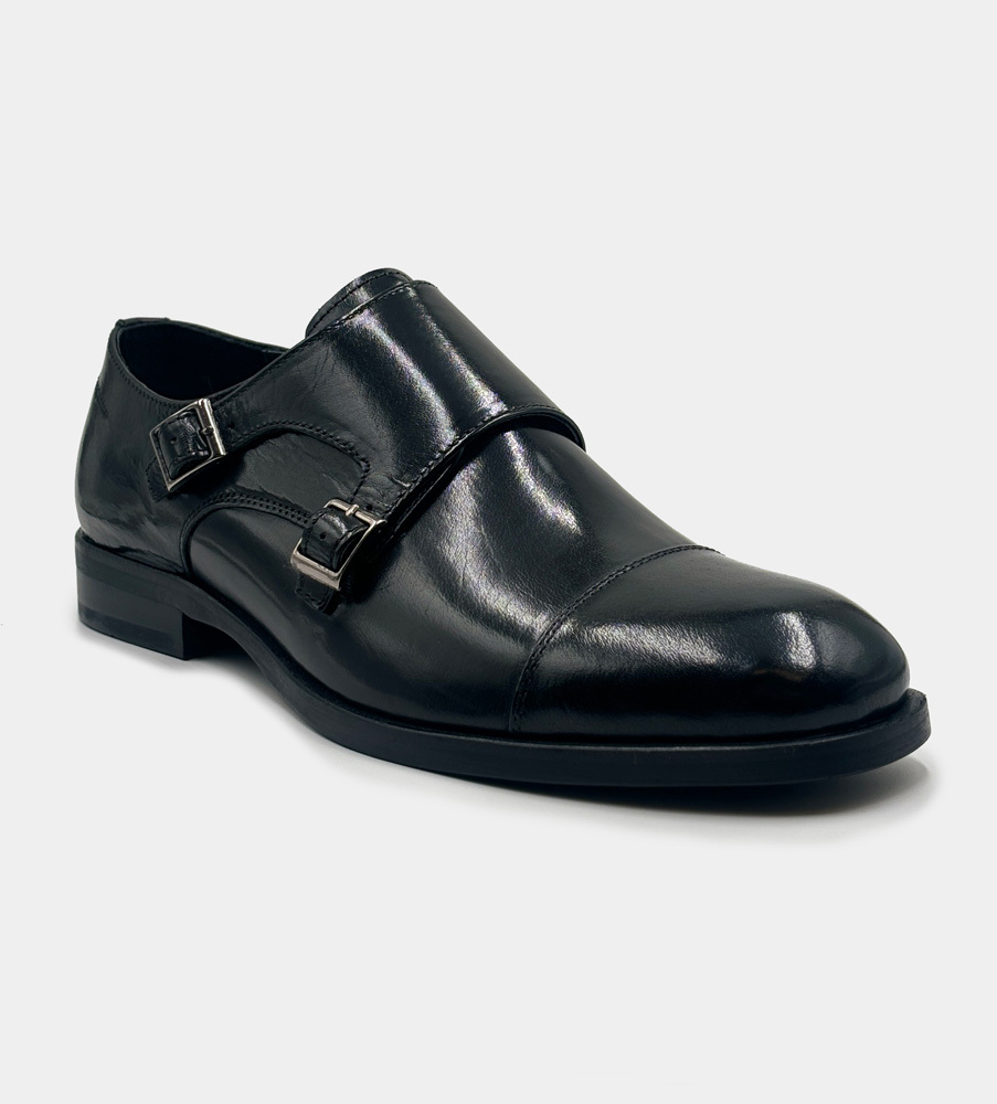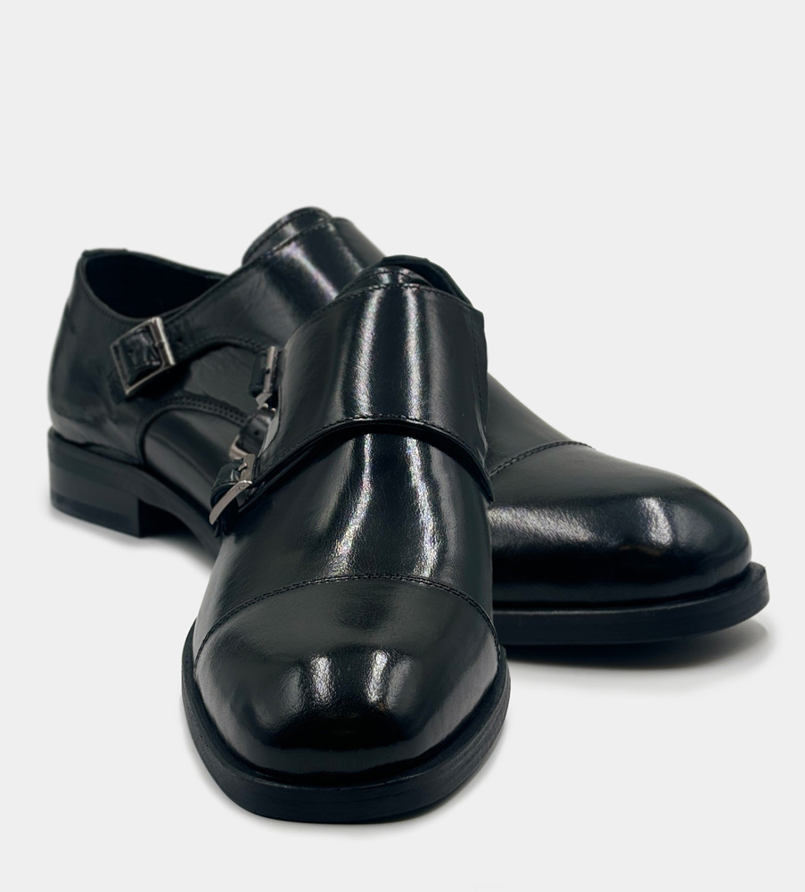 Eleganta och moderna lågskor i putsat buffelskinn. Skon har två spännen samt en tåkappa. Detta är skon för dig som vill ha bekvämligheten av en loafer men vill och vågar sticka ut. En sko för den självsäkre mannen med stil. Skomodellen finns även i brun nyans >>