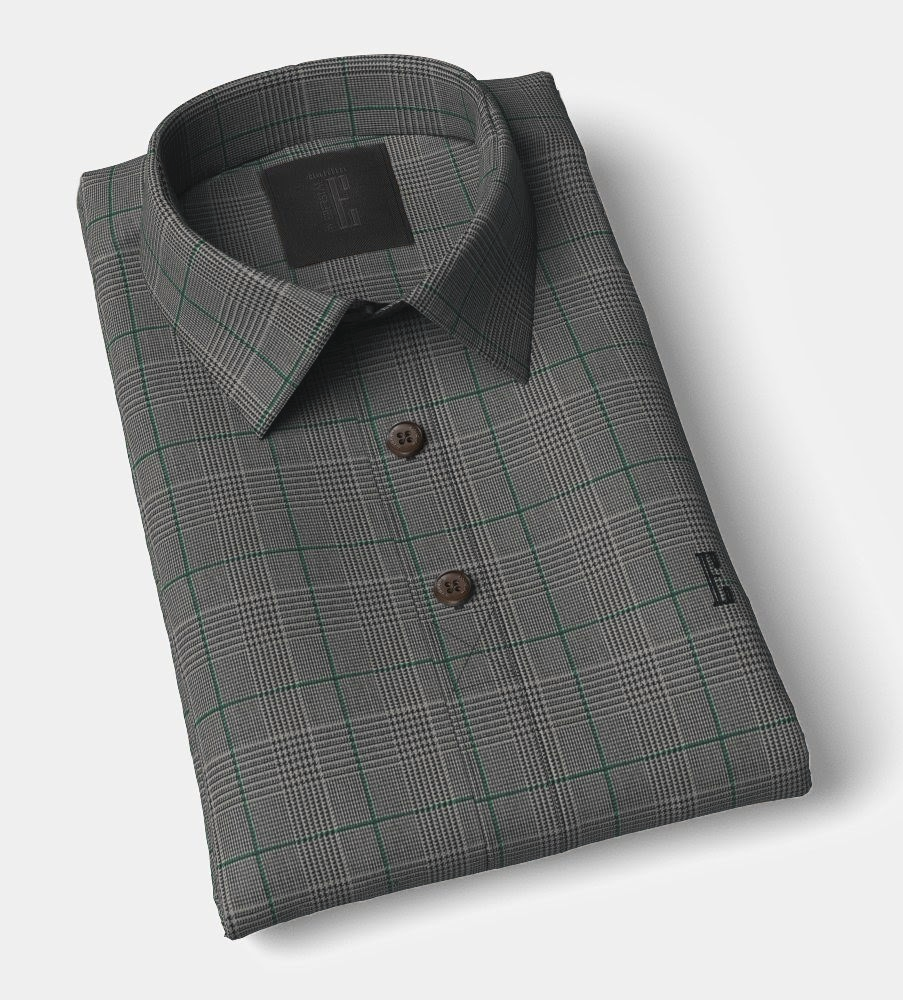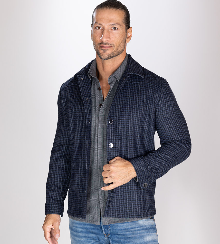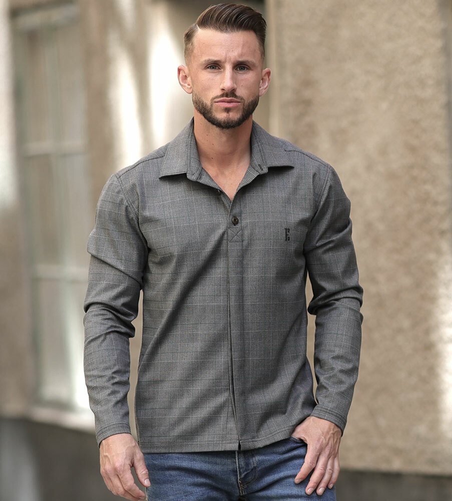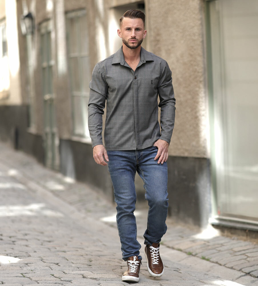 Här har du en läcker skjorta med aningen stretch för perfekt passform och komfort. Mönstret är rutigt men i en upphettad modernare version. Skjortan är uppsydd i en kroppsnära och smickrande passform med rak fram- och bakkant. Skjortan har knappar hela vägen ner men endast de tre övre knapparna är synliga; resten är dolda. Tyget är en twill som är jacquardvävd i ett stilrent rutmönster. Din favorit i garderoben kanske? Om du tvekar på storleken föreslår vi att du väljer den större, eftersom passformen är liten i storleken och sitter kroppsnära. Den blå ull-jackan på bilden heter Thor >>