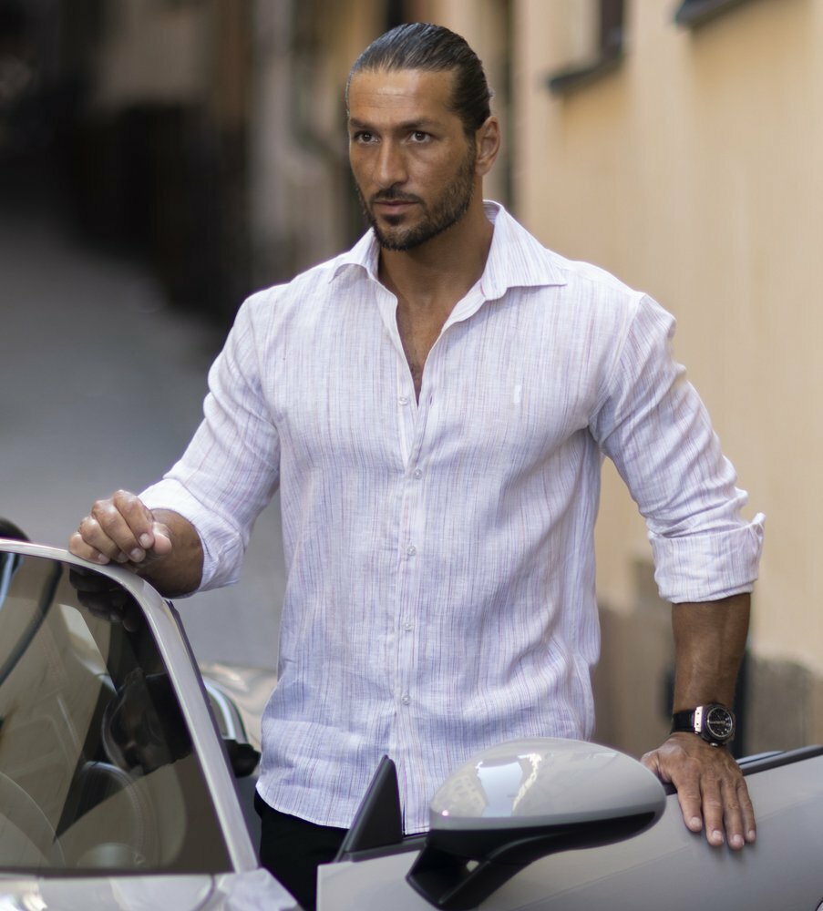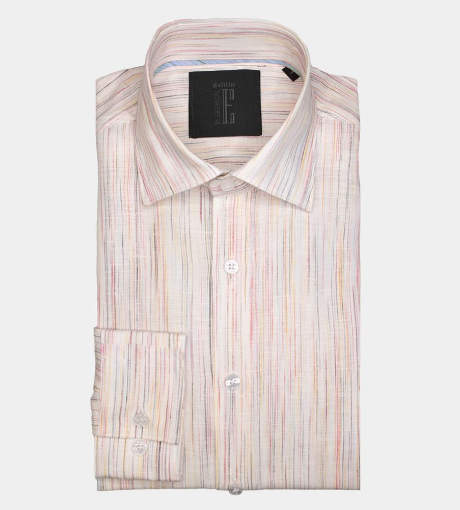 Ingen sommar utan den klassiska linneskjortan! Helst en i varje färg! Denna vita linneskjortans väv har delikata, små invävda färgtrådar i strukturen, logoknappar på knappslået och bröstet pryds av en snygg E brodyr. Dahlin By Eberståls linneskjorta finns i flera härliga färger för att passa alla tillfällen, både till fest och sköna lediga dagar. Linneskjortan är uppsydd i E-cut av en extrafin kvalitet av linne odlat i Normandie, spunnet i Slovenien. Färgat & vävt i Portugal. Detta linne odlas utan bekämpningsmedel i fuktiga miljöer och är ett excellent miljöval. Linneskjortan finns även i ljusblå, sandfärg, vit, rosa och grön färg.