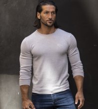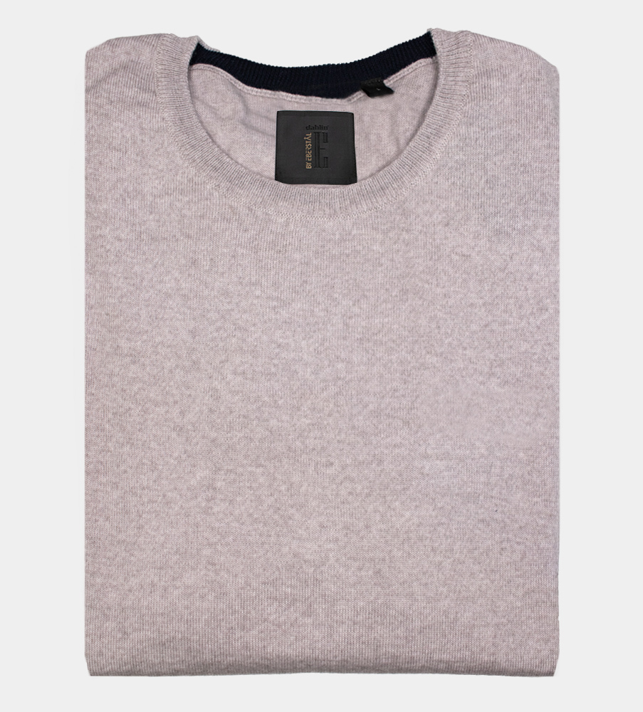 En klassisk beige rundhalsad merinotröja som fräschar upp din look. Tröjan är melerad och har en smal ribbad halsringning och ribbad mudd i ärmarna. Tröjan är stickad av Italiensk Extra Fine Merinoull med brodyr på bröstet. Extra Fine Merino är behagligt mot huden, till och med under sommaren, tack vare sin fina struktur och att det är ett naturmaterial med självrengörande med antiseptiska egenskaper. Merinogarnet kommer från vår italienska leverantör och tröjan stickas i Östersjöområdet.