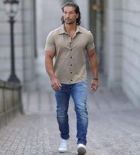 En underbar skjorta för härliga dagar i solen. Skjortan är uppsydd i ett härligt jerseytyg med precis lagom stretch och tyngd. Skjortan har ett franskt knappslå och ett bakstyck som är aningen längre än framstycket för en smart look. Skjortan passar dig som uppskattar plagg som både hänger snyggt och sitter perfekt. Och som du kommer upptäcka, smickrar tyget kroppen, för en ultimat upplevelse.