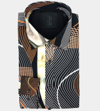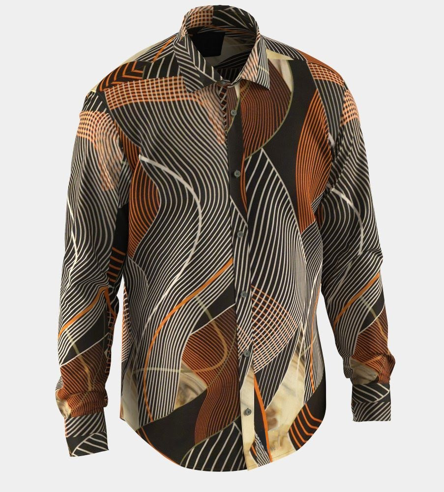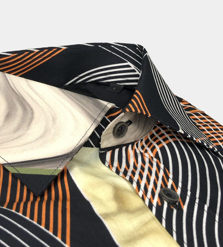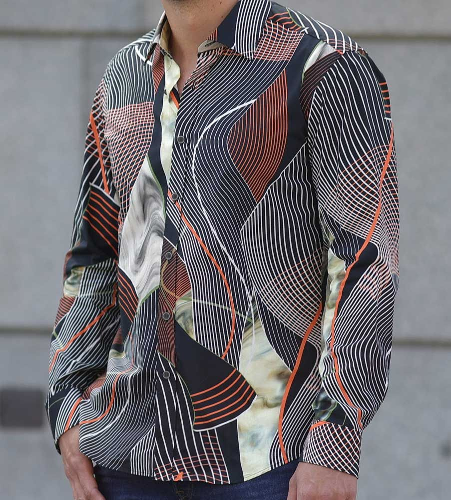 Djärv och häftig skjorta i årets färgskala som garanterat drar blickarna till sig. Tyget är av 100% bomull med vacker lyster och trycket har diskreta detaljer i en annars elektriskt vågad mönsterbild. Tyget har miljömärkningen Oeko-tex STeP, vilket betyder att alla produktionsstegen under tygets tillverkning är gjorda med speciell hänsyn till miljön.
