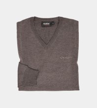 MERINOTRÖJA I ULL MED V-HALS - BRUN/BEIGE