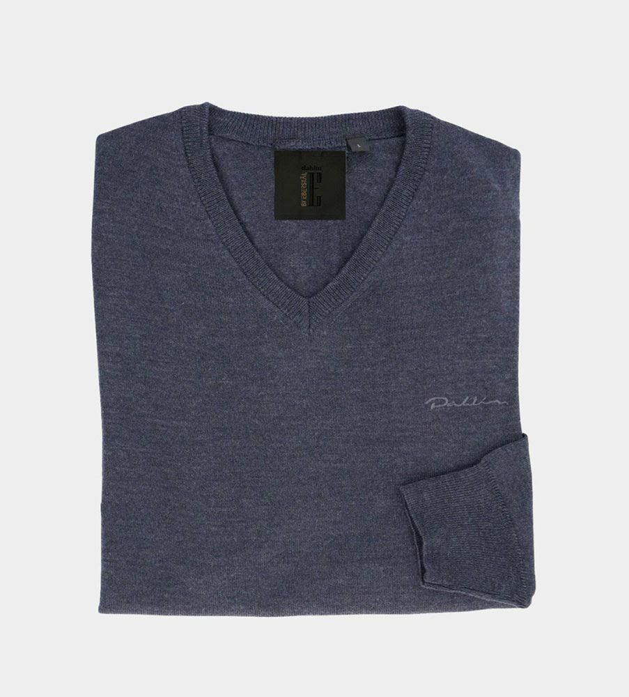 MERINOTRÖJA I ULL MED V-HALS - MELERAD BLÅ