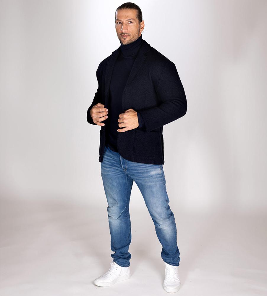 En bekväm och lyxig blazer i virgin wool som ger dig det bästa av två världar; både komfort och stilkänsla. Blazern har en vacker marinblå nyans och stängs med tre knappar. Framtill finns två påsydda fickor. Krage och fickor är sydda med detaljer som ger kavajen extra attityd och en ledig look. Blazern är uppsydd i 100% mjukt ull-boucle-garn från Italien som är finisherad med het ånga. Behandlingen gör ullen tät men ändå mjuk och blazern får en naturlig stretch vilket gör den bekväm att bära. Blazern passar perfekt både till jeans och kostymbyxor men kan dessutom användas som ytterplagg sensommar och höst. Innanför kragståndet finns en metallkedja för smidig upphängning. Finns även i alternativ färgskala, Oden Blazer Mullvad >>