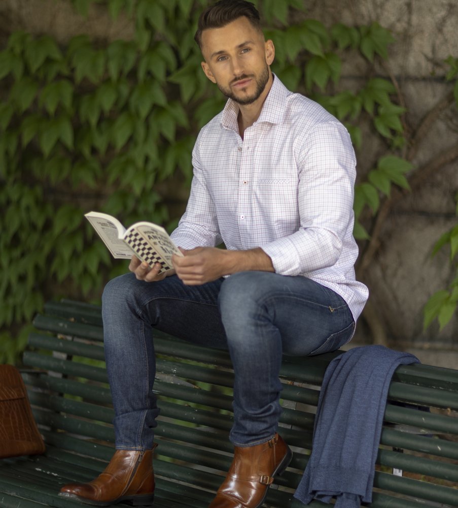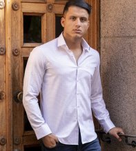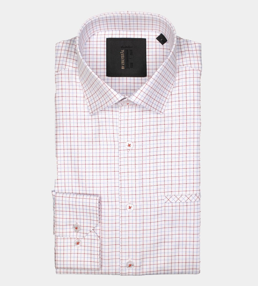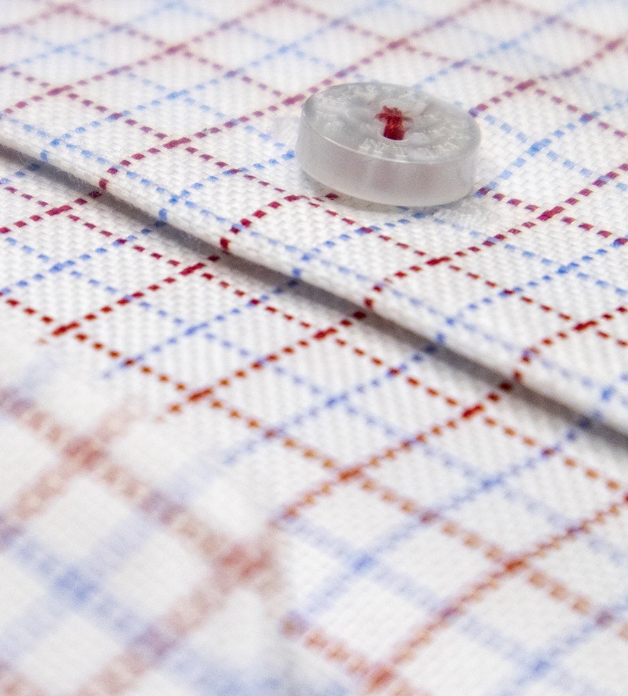Naturlig och okomplicerad skjorta med diskret blå/röd stygnruta på vit botten. Härlig bomull (100%) i Oxford Natté. Mycket hög kvalitet diskret närvarande i detaljer: