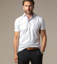 En snygg och skön pikétröja med kort ärm som är uppsydd i finaste jersey för komfort och stil. Vår trendiga krage, läckra kontrasttyger, en designficka med brodyr och perfekt ärmlängd gör plagget till en favorit i garderoben. Den bearbetade designen passar för både kontoret samt sommarfester. Vår höga jersey kvalitet bibehåller sin finish, tvätt efter tvätt. 95% bomull, 5% elastan.
