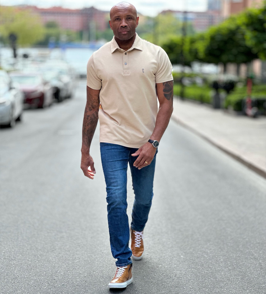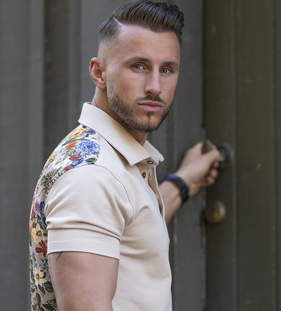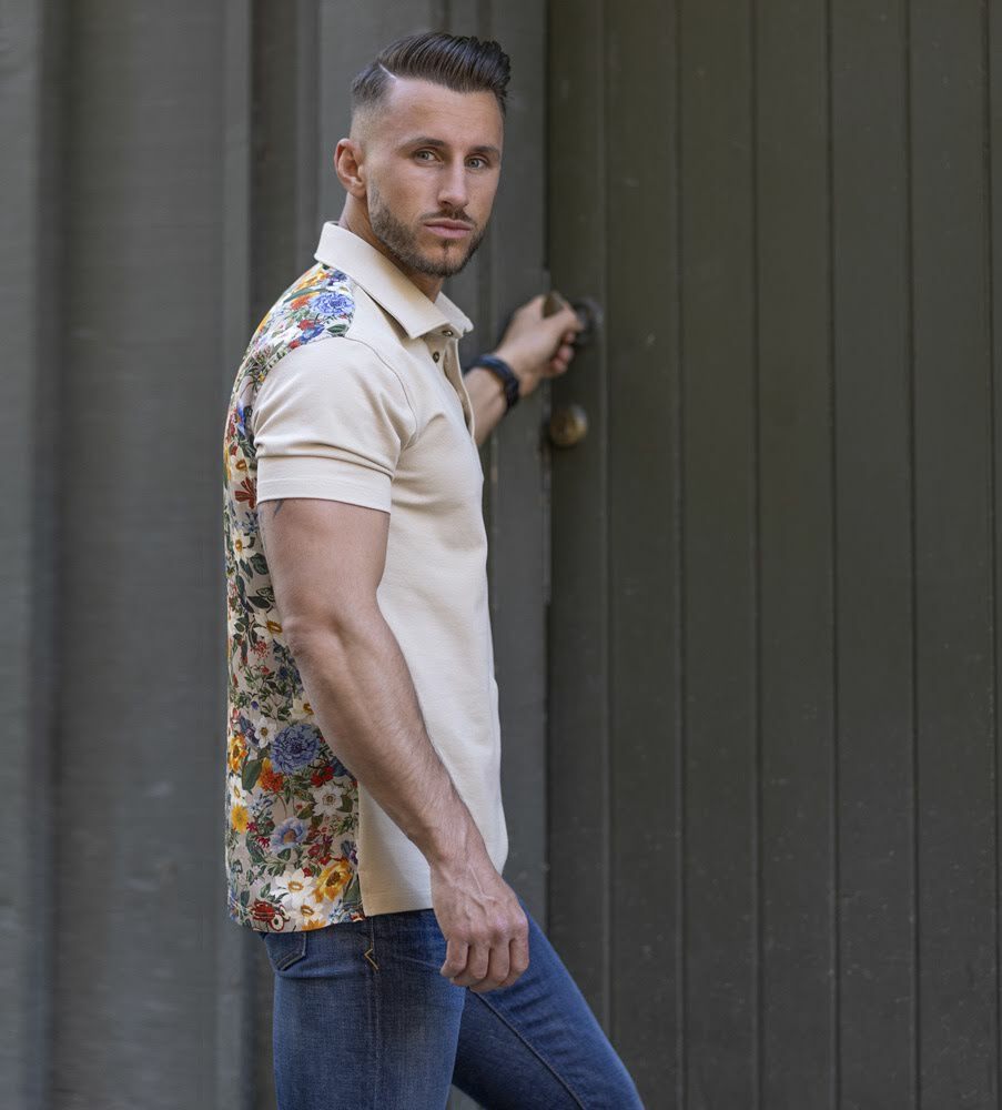 Mixade material, olika mönster och oemotståndlig. En underbar och innovativ pikétröja som kombinerar ett potent pikétyg från Italien med en fransk blommönstrad väv med attityd. Den stilsäkra pikétröjan har en modern krage. Skjortans designade knappar i metall förseglar skjortans häftiga apparans. Porthos Flip Side är sommarens guldkorn;  skjortan för dig som orädd navigerar dig fram i livet och tar dagen som den kommer! Pikétröja med läderdetaljer >>