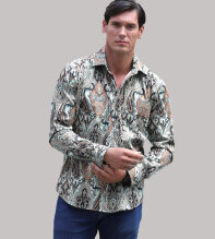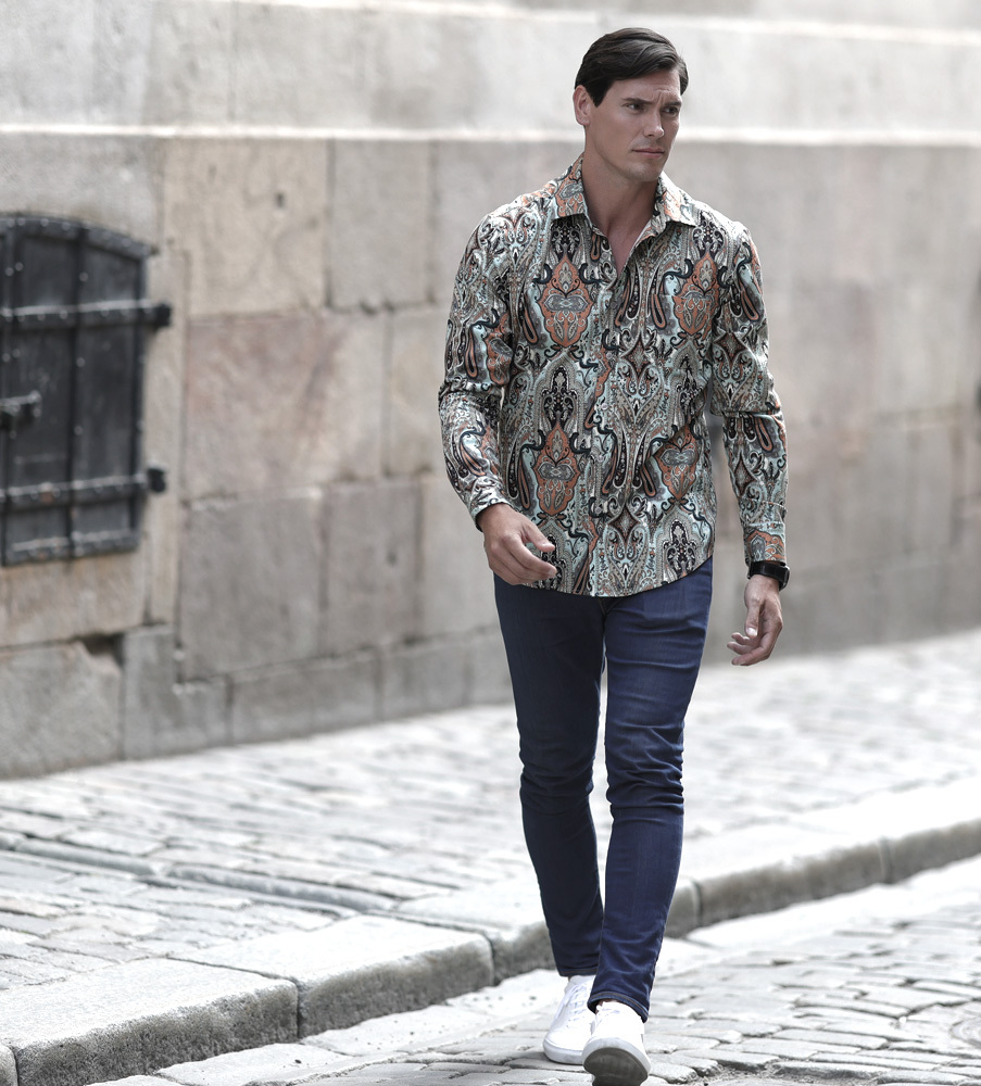 En ikonisk skjorta med kraftfullt mönster på ljus bakgrund som lyfter fram alla färger. Det fina sitter i detaljerna; subtilt designade med en beige neckfacing på insidan, knappar i grön nyans samt en smart ficka på bröstet. Bomullstyget har den trendrätta satinstrukturen och är vävd i Portugal. Detta är kanske årets coolaste skjorta!