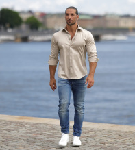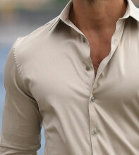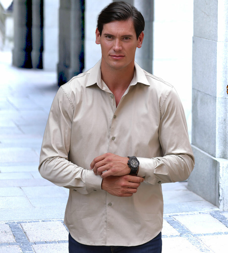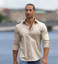 Vår omtyckta bomullsskjorta med naturlig stretch sitter som en dröm på kroppen för att du ska känna dig som en kung. Skjortan har en läcker, beige nyans med knappar ton i ton. Skjortan är uppsydd i vår omtyckta stretchkvalitet med BCI bomull i en av säsongens nya trendfärger. Tyget har en lätt naturlig lyster och kommer från ett spanskt väveri; och har blivit uppsydd i Polen. Skjortan är ultrabekväm att bära hela dagen och det här materialet är lättskött tack vare en skrynkelfri behandling. Skjortan finns i nio heta nyanser som Svart, Vit, Tallbar, Mustard, Kakao, Midnatt, Mintgrön, Beige, Blå.