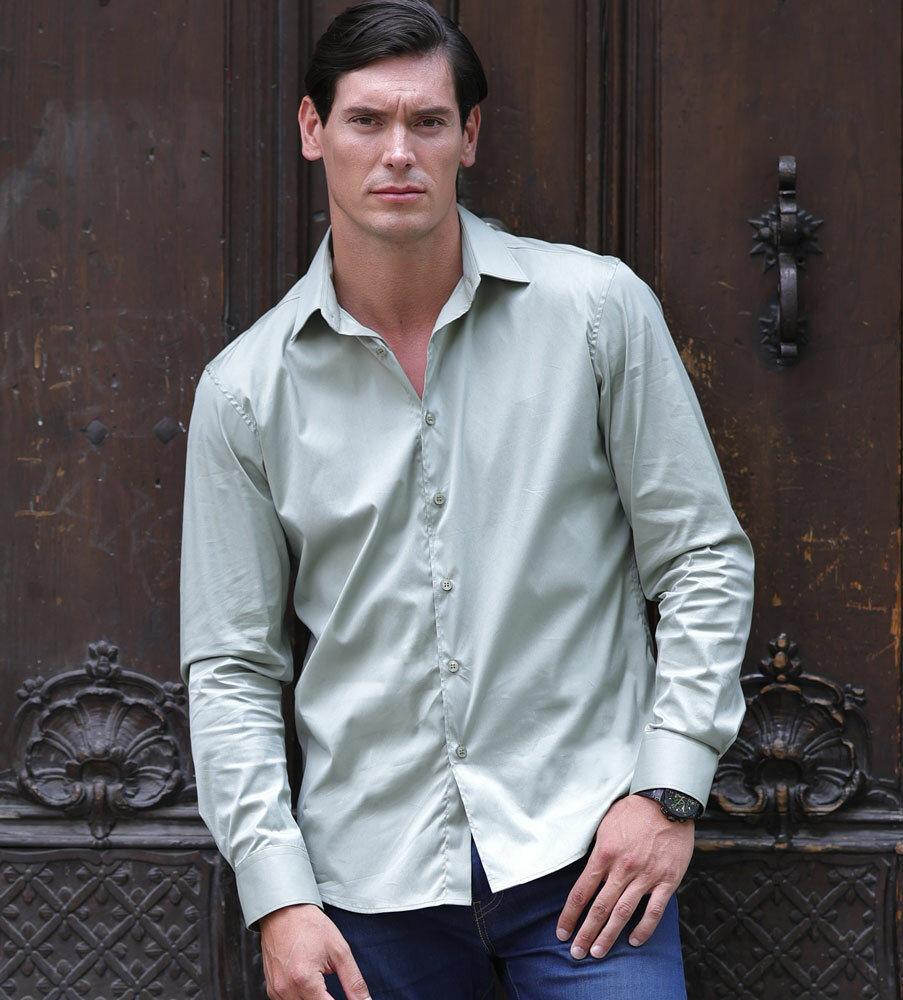 Vår omtyckta bomullsskjorta med naturlig stretch sitter som en dröm på kroppen för att du ska känna dig som en kung. Skjortan har en läcker, grön nyans med knappar ton i ton. Skjortan är uppsydd i vår omtyckta stretchkvalitet med BCI bomull i en av säsongens nya trendfärger. Tyget har en lätt naturlig lyster och kommer från ett spanskt väveri; och har blivit uppsydd i Polen. Skjortan är ultrabekväm att bära hela dagen och det här materialet är lättskött tack vare en skrynkelfri behandling. Skjortan finns i nio heta nyanser som Svart, Vit, Tallbar, Mustard, Kakao, Midnatt, Beige, blå.