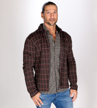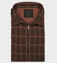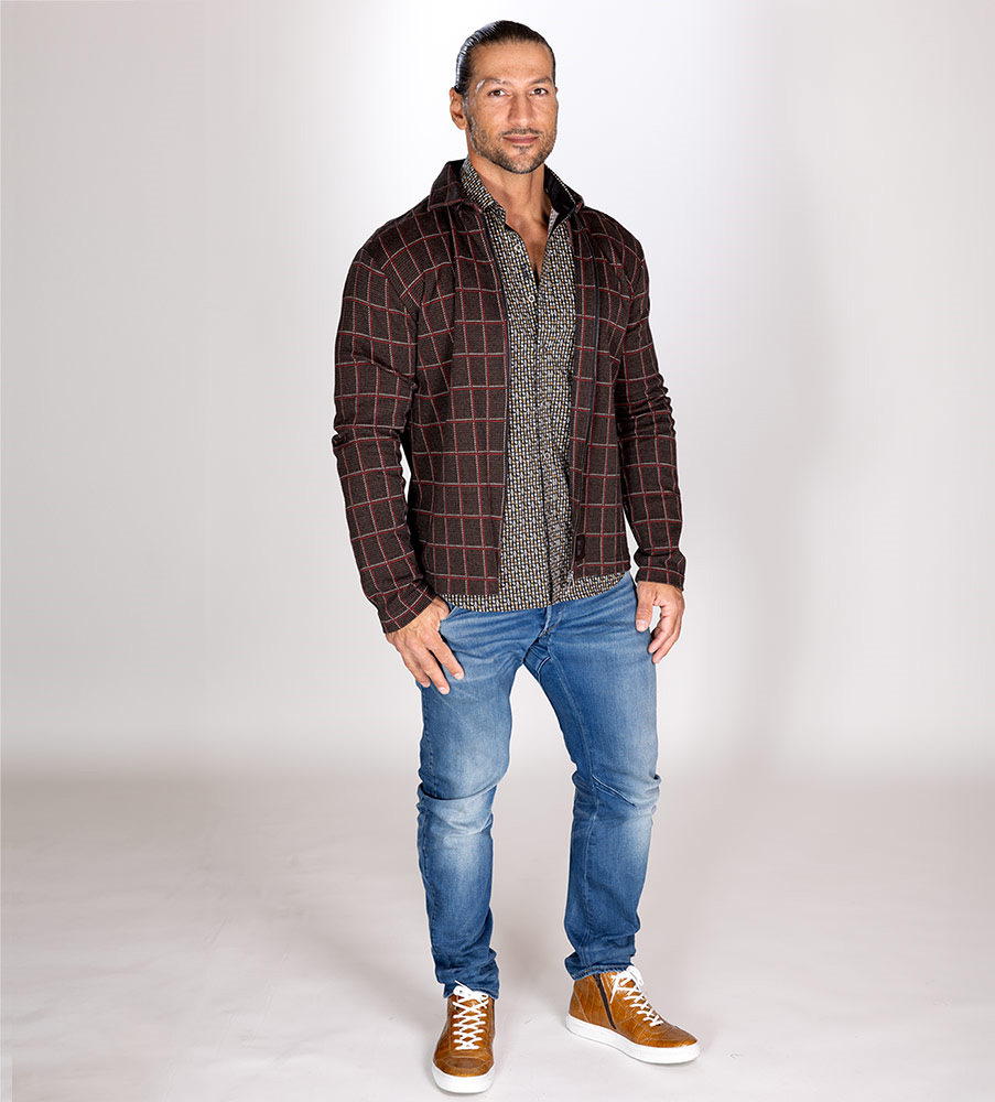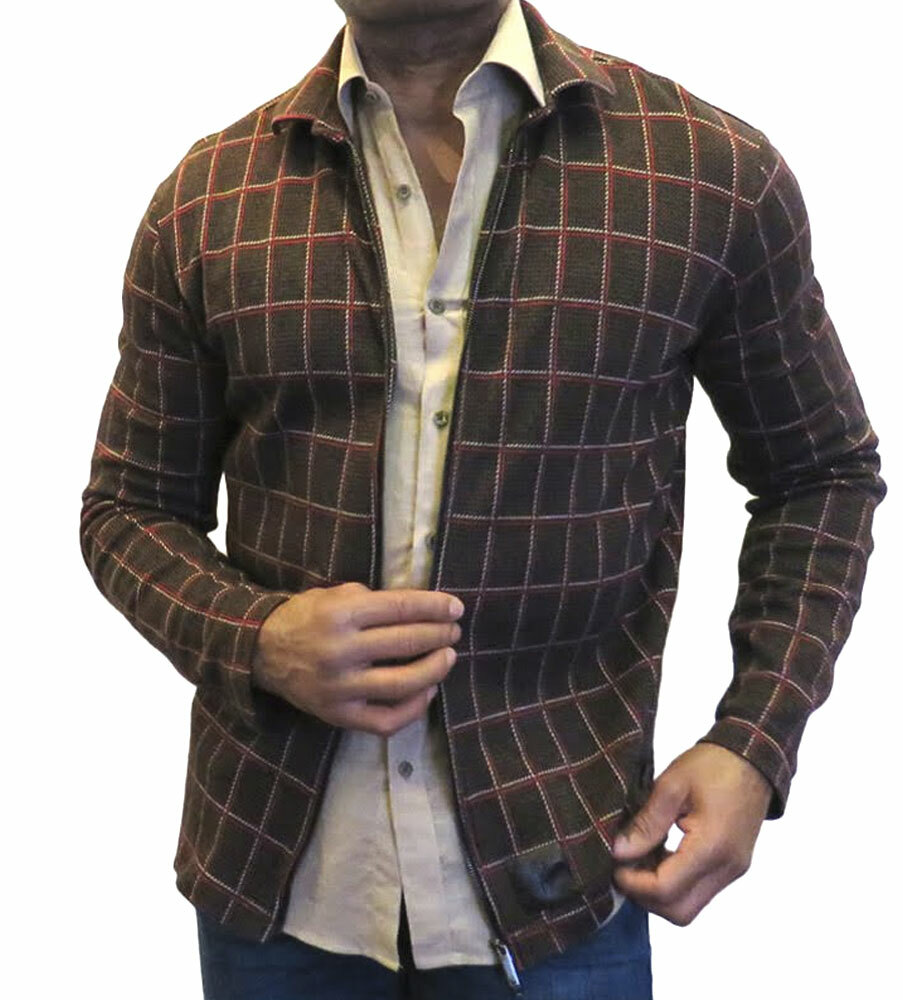 Här har du höstens snyggaste helzip-tröja i cardigan-stil. Helzip-tröjan är uppsydd i ekologisk jacquardstickad bomull. Jaquardstickningen har trådar av, brunt, svart, rött och vitt i ett moderiktigt, houndstooth-inpirerat, kvadratiskt mönster. Materialet kommer från ett stickeri i Portugal och själva tröjan sys upp i Polen. Tröjan har vår metalldragkedja och dragkedjskläpp med graverad Dahlin by Eberstål logo, och går att öppna både upp- och nerifrån. Den här tröjan är versatil och passar till de flesta byxorna i garderoben; dragkedjan öppen eller stängd. Möjligheterna är många; vi tror att det blir din favorit!