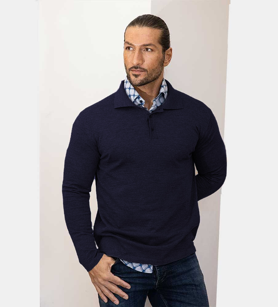Upptäck vår underbara finstickade tröja med krage och tre knappar som är ny för säsongen. Tröjan är stilig men ger ändå en avslappnad look. Perfekt över Dahlinskjortan eller direkt på kroppen. Tröjan är stickad i Extra Fine Merino-Ull från Baruffa i Italien i högsta kvalitet i en marinblå nyans. På bröstet finns ett broderat E och tröjan har fina knappar i samma nyans. Ull har självrengörande egenskaper och kan därmed tvättas mer sällan än tex bomull. Tröjan finns i grön, grå och marin.