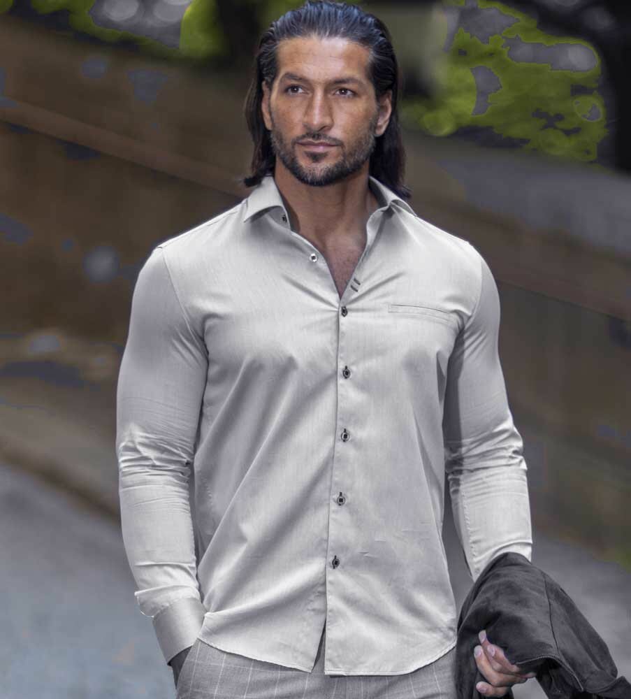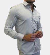 En silvergrå skjorta i easy care utförande med slående detaljer, kännetecknande för Dahlin By Eberstål. Skjortan finns i mintgrön, blå och silvergrå färgsättning. Tyget är en 2 ply yarn, faller snyggt och skjortan sitter bekvämt. Tyget är vävt av 100% bomull i twill, en metod som skapar ett estetiskt tilltalande diagonalt mönster i tyget. Skjortan har ett mörkare grått kontrasttyg på inre kragstånd och undre knappslå. På knappslået finns två dekorativa horisontella knapphål. Läckra fyrkantsdesignade knappar. Manschetterna har knapphål som enkelt går att konvertera för manschettknappar om man skulle önska. Skjortan är lika snygg på stan som i baren, med kostymbyxor eller till ett par slitna jeans. En garanterad favoritskjorta i garderoben som du kommer vilja visa upp och använda dag efter dag.