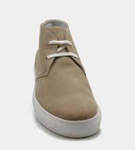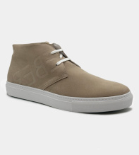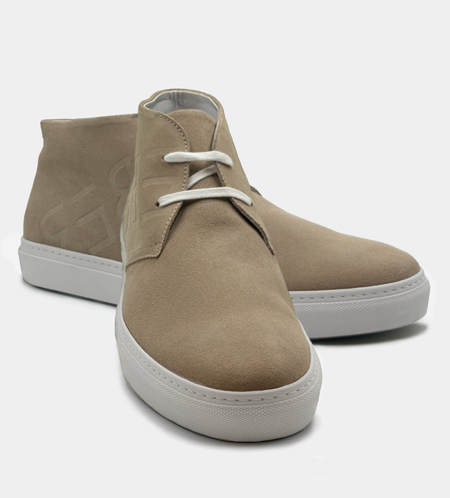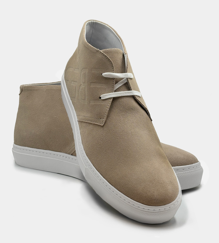 Höga sneakers i exklusiv beige mocka med fina miljömärkningar och ungdomlig design. En hög sneaker passar bra både till vår och sommar tack vare att både ytter- och innerdelar är av äkta naturmaterial som läder och mocka. Skorna är tillverkade i finaste italienska mocka med läder på insidan. Utsidan har en snygg dekordetalj. Sneakern har en bekväm passform. Sulan är krispigt vit, tillverkad i gummi för bra grepp och bekväm gång. Ingår två olikfärgade skosnören. Dessa mockasneakers finns i flera färger: blå, brun, beige. Linneskjorta som bilden >>