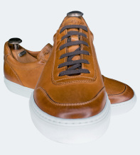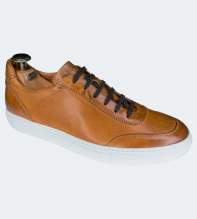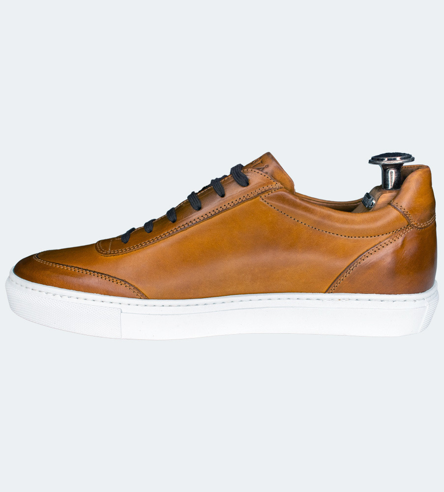 En stilren och exlusiv sneaker i självsäker design som är tillverkad i nougatbrunt nappaskinn. Skon har snygga detaljer och en logotype på plös samt vårt ikoniska brodyr bak på hälen. Sulan är krispigt vit, tillverkad i gummi för bra grepp och bekväm gång. Ingår två olikfärgade skosnören.