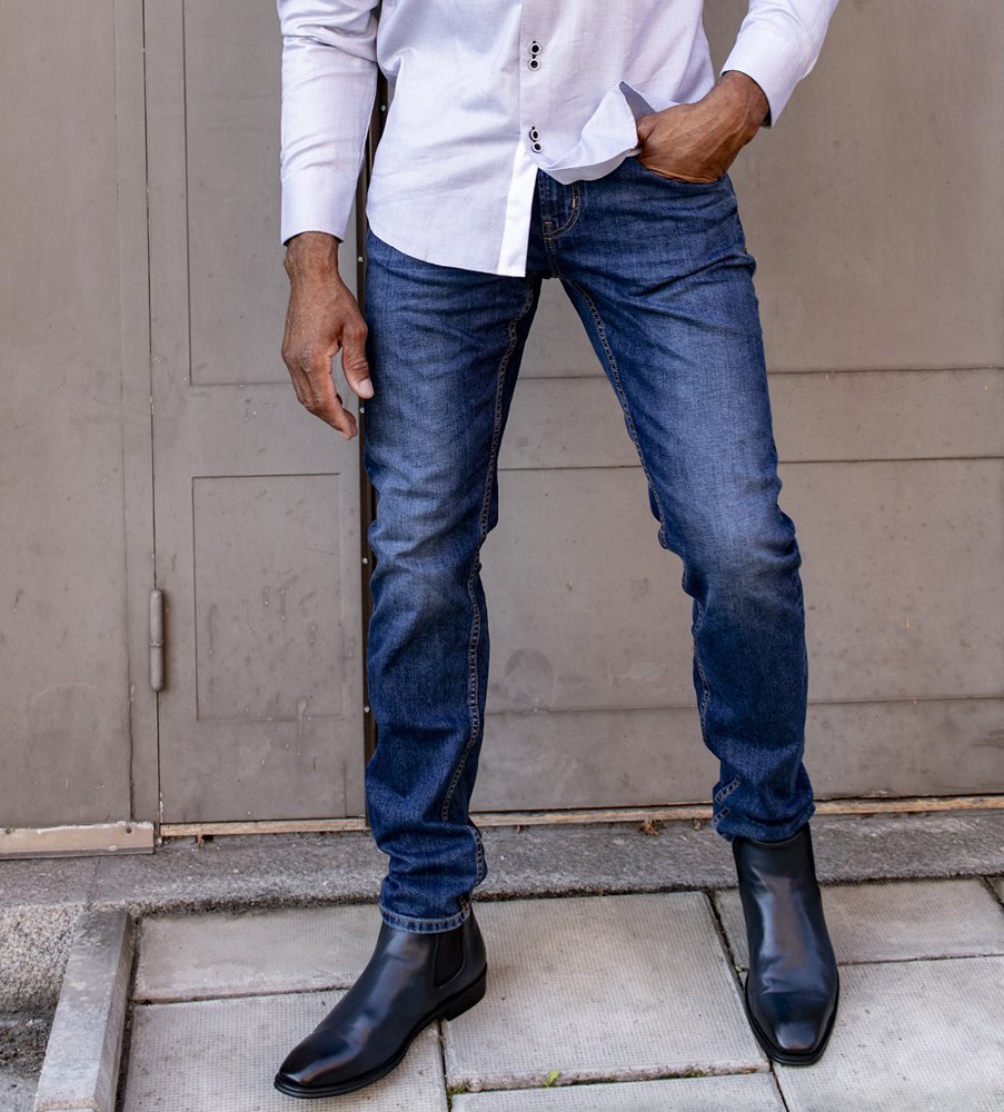 Chelseaboots i buffelskinn med snygga detaljer och härliga naturliga färgskiftningar. Resårer på båda sidor gör att bootsen är smidiga att ta på. Graverat E på skaftet som signatur för en kvalitetssko från Dahlin by Eberstål. Skjortan på bilden med dubbelknappar finns i röd nyans.
