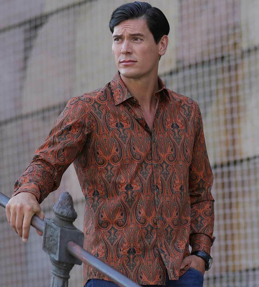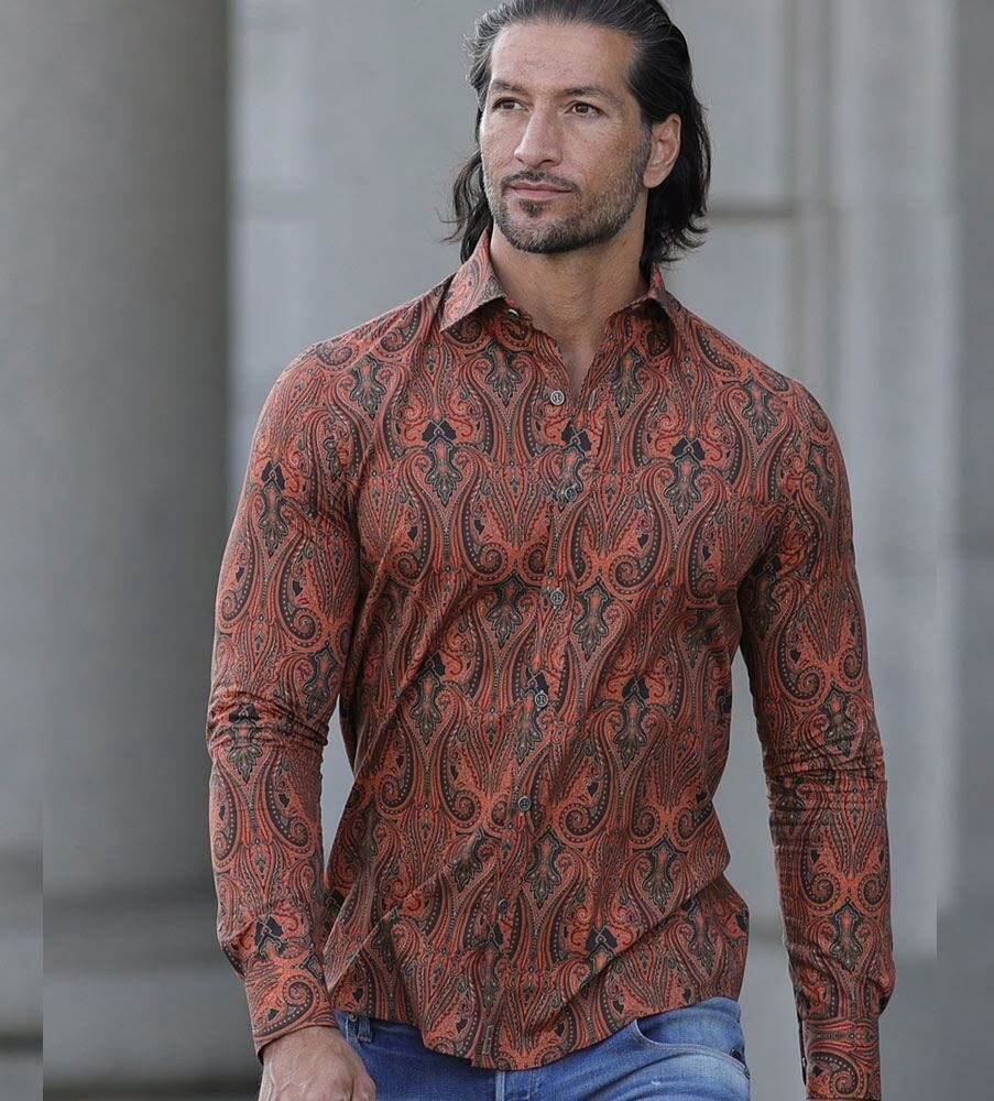 Här har du en fantastisk skjorta med ett ikoniskt paisleymönster i säsongens statement färger. Skjortan är uppsydd av en fin bomullspoplin från Italien som är både hållbar och bekväm. Skjortan har snygga metallknappar från arkivet och rundade, trendrätta manschetter. Med den här skjortan i garderoben står du rustad för alla tillfällen då skjortan passar lika till vardags som vid speciella tillfällen vilket gör den till den perfekta versatila skjortan. Skjortan finns i en till nyans här >>