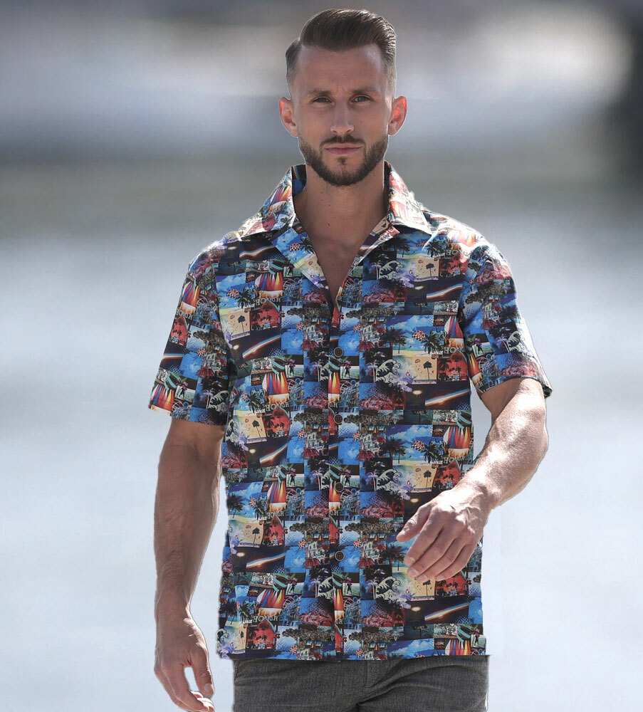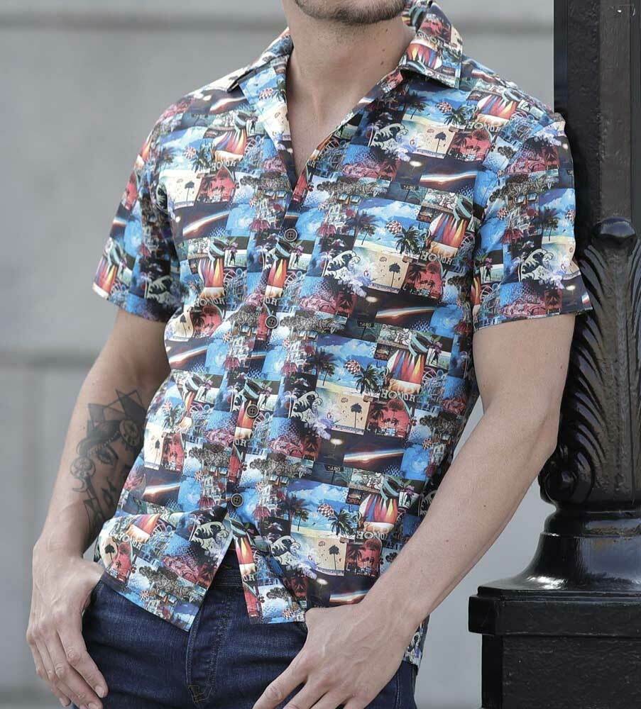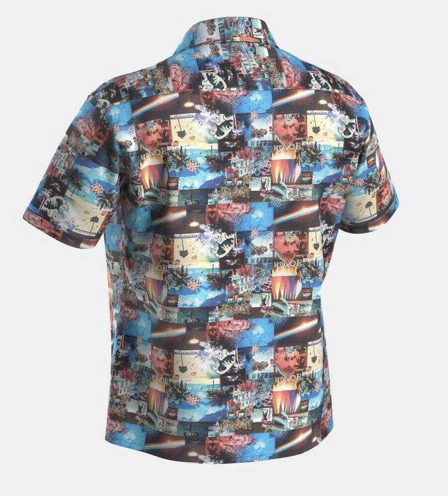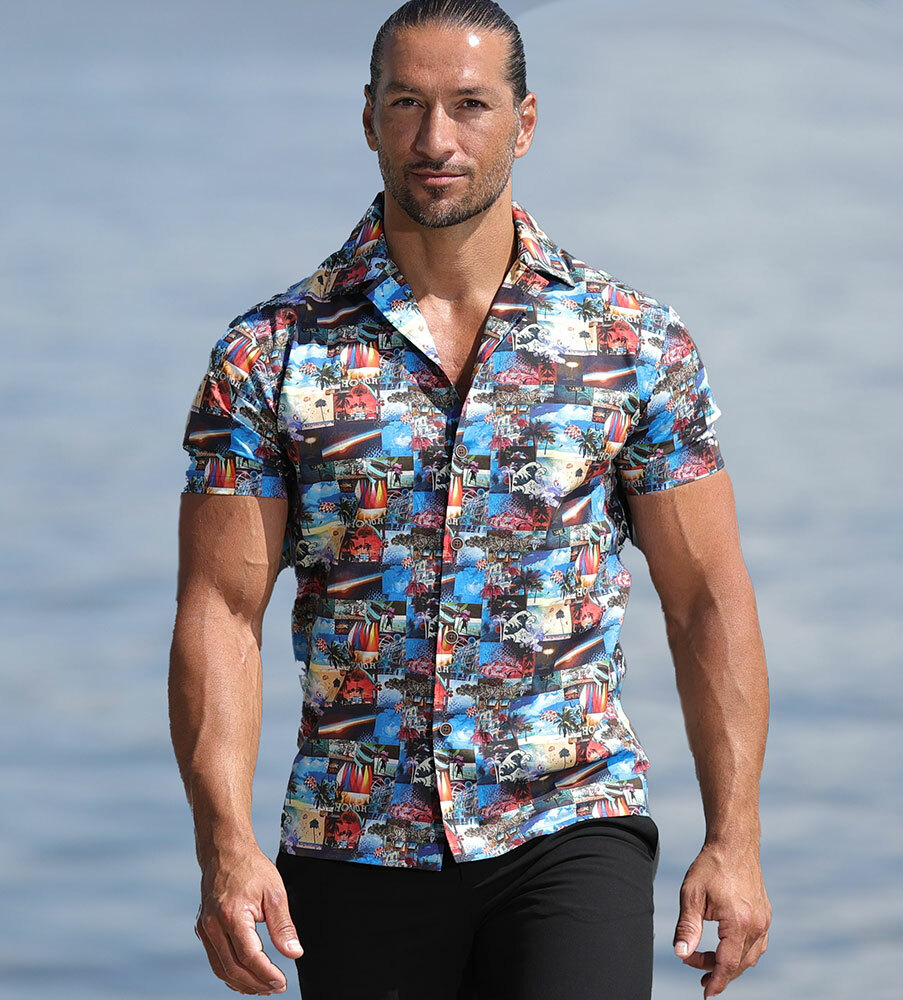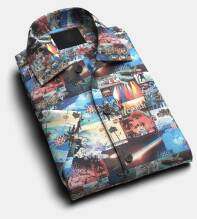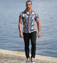 Kortärmade sommarskjortan med attityd är korad årets hetaste sommarskjorta i din garderob. Skjortan har ett skönt mönster i läckra trendfärger, träfärgade knappar på knappslået och en kaxig krage. Välj att bära skjortan som vanligt eller vik ner kragen för en cool hawaii-look. Det härliga bomullstyget är vävt och tryckt i Italien.