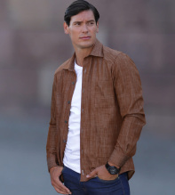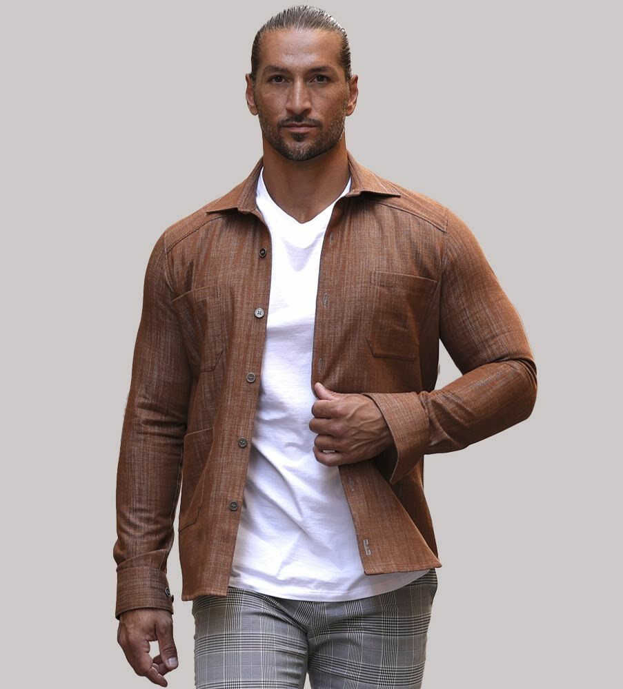 En kopparfärgad semi-dressad jacka i en kraftfull men följsam twillväv. Läcker pop-up krage och framflyttade axelsömmar för en säker look. Fyra patch-pockets. Mäktig tyngd och perfekt fall. Från spanskt väveri med fina certifieringar. Överskjortan matchas snyggt med Stone Edge Skjorta >>